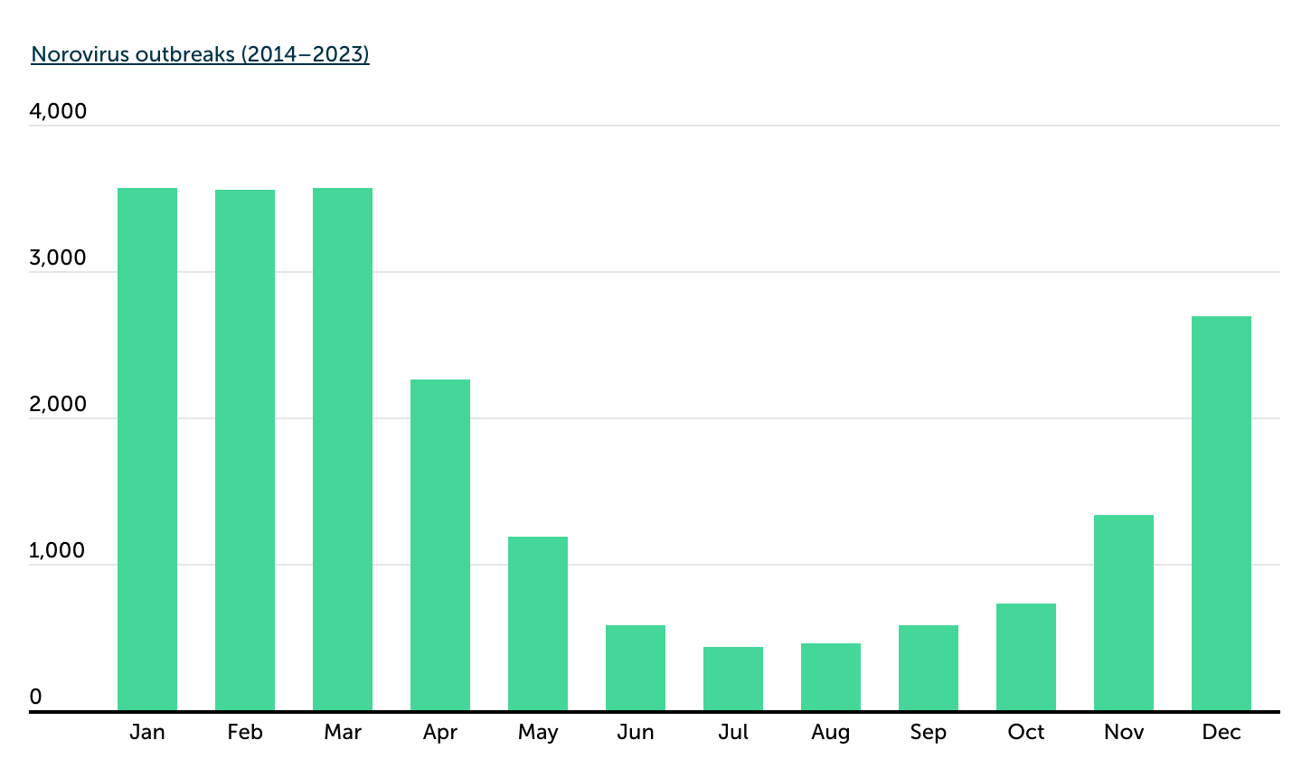 Norovirus outbreaks peak in the winter months and extend into the spring